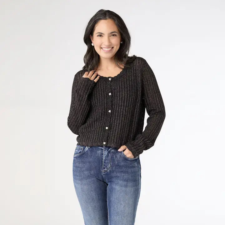 • Load image into Gallery viewer, Jodilyn Open Knit Cardigan with Lurex