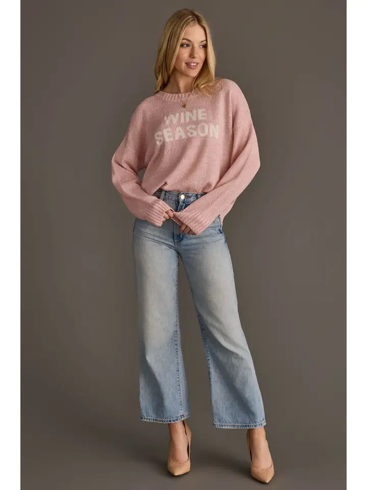 Lightweight knit sweater with "WINE SEASON" graphic and relaxed fit