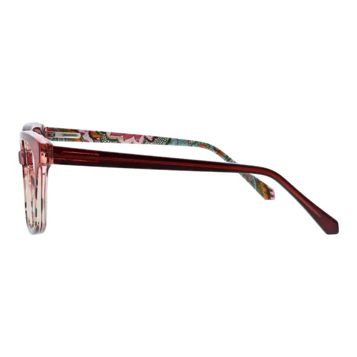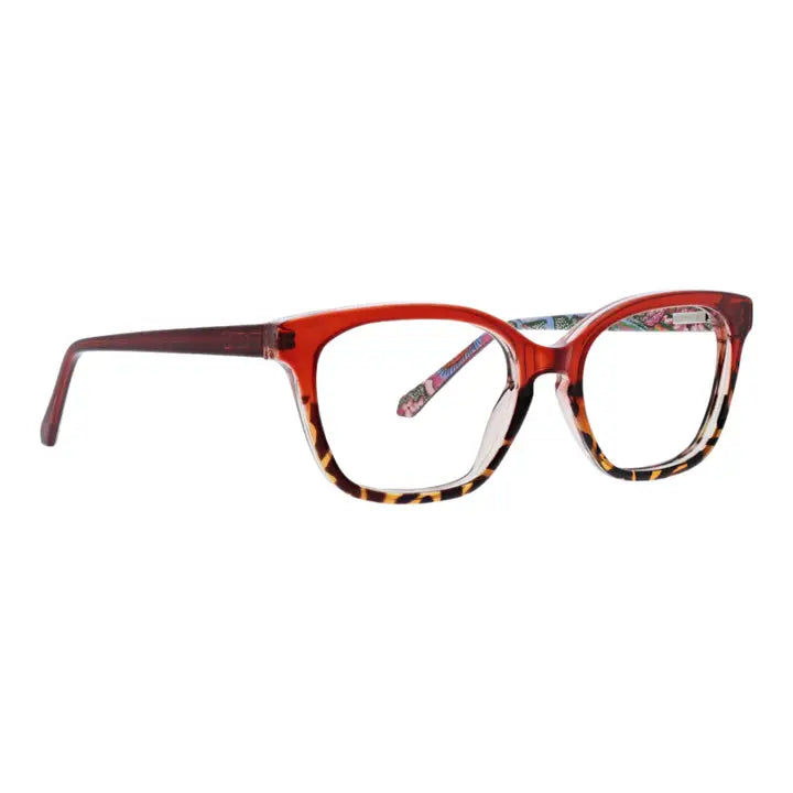 Blue light filtering lens protect eyes from harmful rays on digital devices and reduces eye strain. Wire core in the temples and spring hinges provide a custom fit. Includes a Vera Bradley slip in case for protection of readers when not in use.