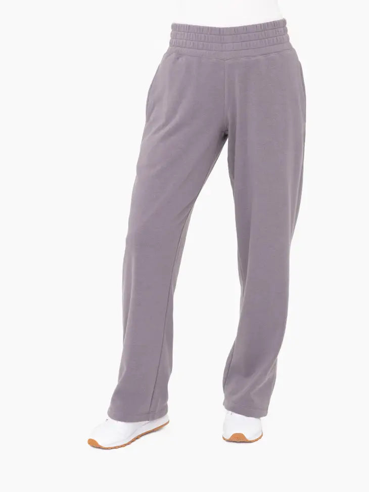 Whether you're lounging around the house or opting for a comfy, casual day these cozy lounge pants are the perfect pick. It's made from a washed Terry fabric with a lightly brushed interior and features an extra wide elastic waist for a secure fit and a wide leg fit for maximum comfort.